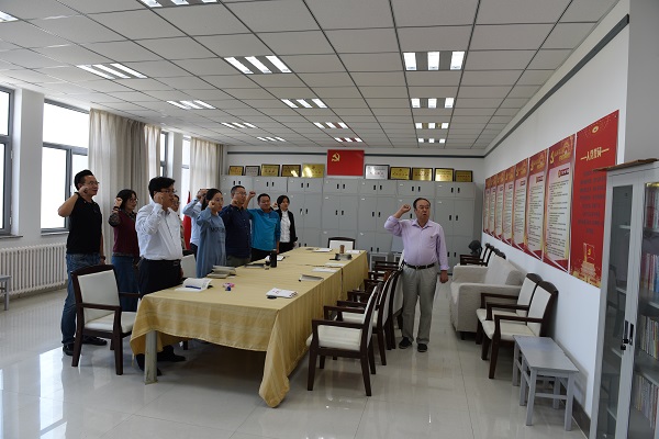 会议首先组织全体党员在党旗下重温入党誓词。