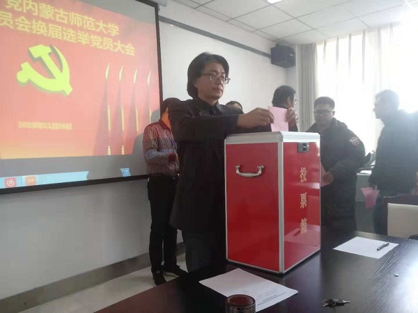 经学校党委批准,2018年11月28日上午10:00,十大买球官方网站党委换届选举党员大会在学院三楼会议室召开。乌力吉同志代表原十大买球官方网站党总支作工作报告,大会审议和表决通过了工作报告、选举办法、党委委员候选人预备人选、监票人和计票人。通过大会选举,产生了十大买球官方网站新一届委员会委员乌力吉、苏小波、郝圣恩、朱月明、白胡格吉乐图、沈晓倩、杨曦浩等七位同志。