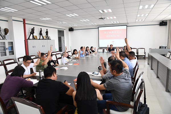 6月11日上午,十大买球官方网站召开全体党员大会,十大买球官方网站党总支副书记石钧主持会议, 全体教师党员参会。