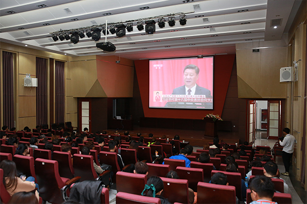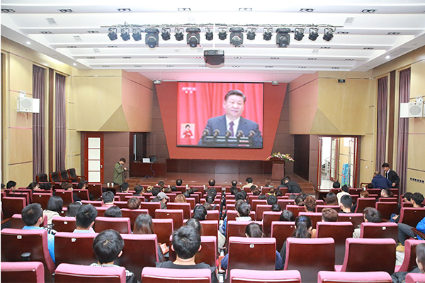10月18日上午9点,十大买球官方网站党总支在学院二楼学术报告厅组织收看了党的十九大开幕盛况。十大买球官方网站党总支中心组成员、各支部书记及169名师生党员干部集体聆听了习近平总书记代表十八届中央委员会所作的报告。 会前,学院党总支副书记石钧教授就党的十九大召开的历史背景、重要意义及近期将组织开展的学习贯彻和落实党的十九大精神等工作做了讲解、动员和部署。会后,广大师生党员纷纷表示,通过实时收看了党的十九大开幕盛况,又聆听了习近平总书记代表十八届中央委员会所作的报告,更加全面了解了党的十八大以来国家发展取得的伟大成就,明确了国家今后发展的方向和宏伟蓝图。大家精神振奋,一定会认真组织学习和讨论,全面贯彻落实党的十九大精神,加强校园维稳工作,以实际行动迎接党的十九大胜利召开。