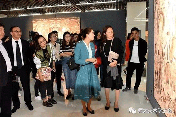 在敦煌展出期间,我们迎来了文学院,外国语学院,鸿德学院,青年政治学院,师大附小、附中等学校三万三千余人次的参观队伍。通过学生党员的详细解说,使敦煌壁画以其独有的感染力及生命力,让参观者在不知不觉中融入画中故事,恍如身临其境。