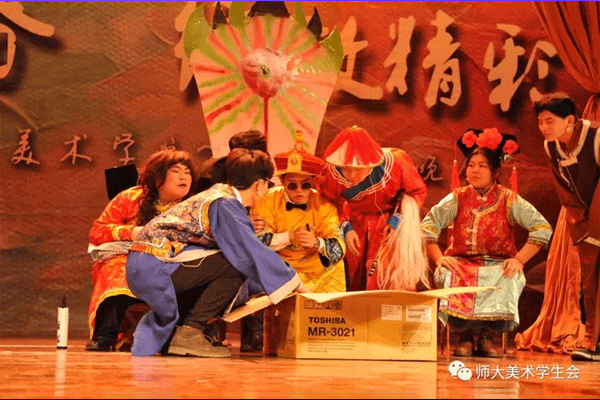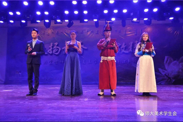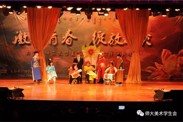 晚会还有多个蒙古族节目,他们华美的服饰和独特的风俗铸就了蒙古族歌舞独有的舞姿及风格动律。张文晶、邵振伟、张朋等同学让我们领略了“蒙古扎鲁”的豪情。伊日木贡、呼格吉勒图、于丽思等同学虽不是专业的歌舞演员,但他们舞动的步伐足以使我们感受到蒙古族人民的热情似火。