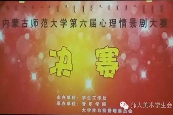 决赛于11月5日在师大本部音乐厅举行。蒙语组演员们配合默契,表演生动、活泼,深入了解人物剧情需要,尽情发挥,将大学生活中遇到的实际困难展现在人们面前,同时演员们以自己的方式去处理问题。表达了当代大学生解决此类情况时,新时代的新方法、新思路、新发展。最终荣获优秀奖。