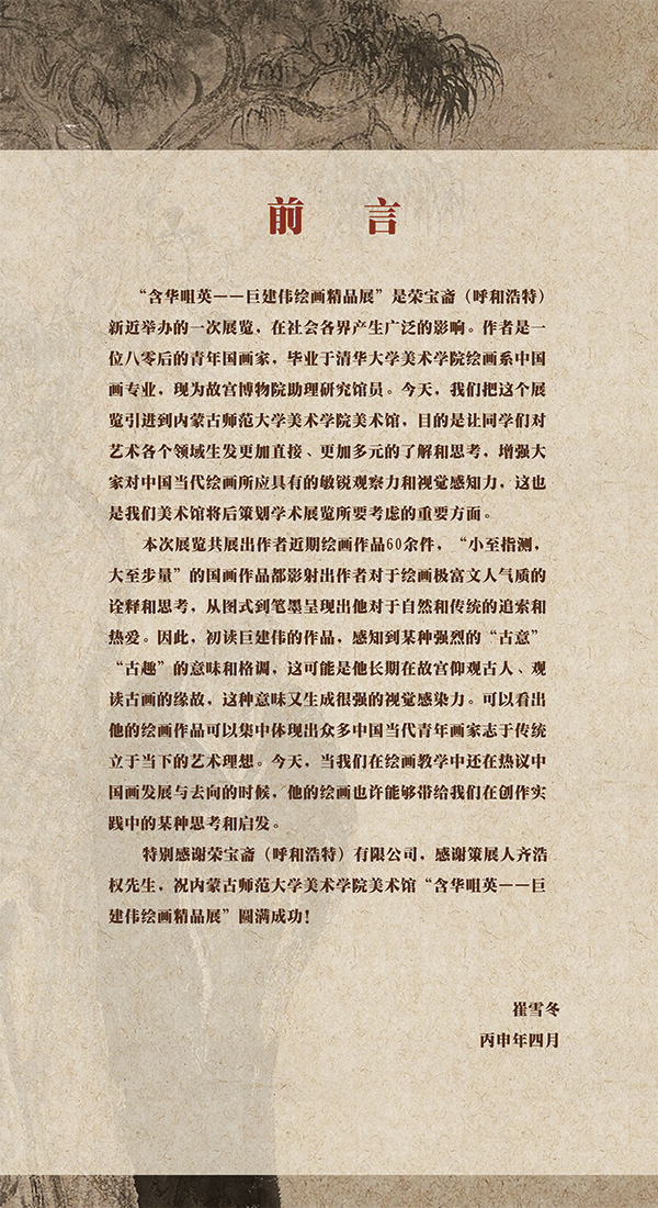 主办单位:十大买球官方网站 荣宝斋(呼和浩特)有限公司 承办单位: 十大买球官方网站美术馆学术主持: 崔雪冬