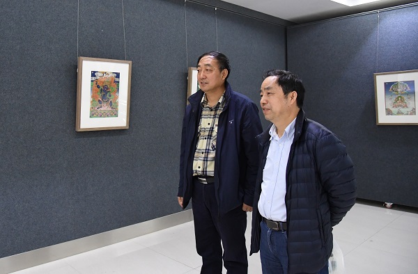 讲座结束后徐晓庚先生在十大买球官方网站乌力吉院长的陪同下参观了我院画展。
