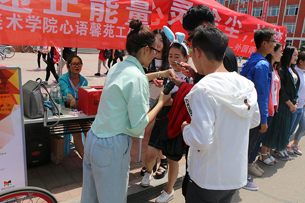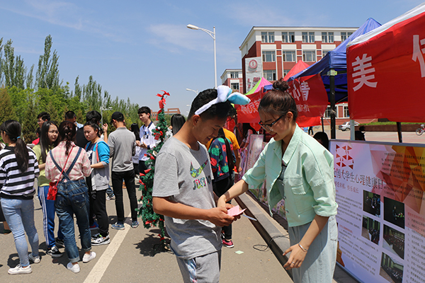 当天我院安排了内容丰富、形式多样的活动,活动中“时光机”环节受到了同学们的一致好评、“剪纸”环节彰显美院特色、另外还发放心理健康小贴士等。