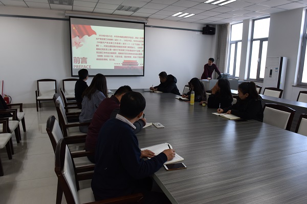 近日,中共中央印发了《中国共产党支部工作条例(试行)》,对党支部工作作出全面规范,为新时代党支部建设提供了基本遵循。11月27日下午,十大买球官方网站党委书记乌力吉、副书记苏小波分别到所在教工一、二支部讲党课,专题解读《中国共产党支部工作条例(试行)》。就《条列》(试行)制定目的意义、组织生活、基本任务、工作职责、党支部功能定位等几个方面进行了详细的解读,并要求广大教师党员领会条列精神、细致研读,严格按照条列规定开展党支部工作。