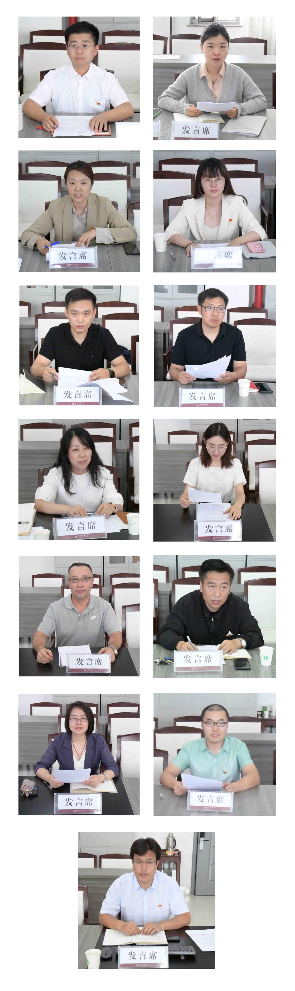 然后,教工第一党支部书记杨家伟,教工第二党支部书记、副院长、美术史论教研室主任张晓霞,学生第一党支部书记、学就办主任沈晓倩,学生第二党支部书记、团总支副书记郭伶慧,国画系主任刘闻涛,油画系主任乌日晗,版画系主任李聪玲,水彩画系负责人卢妮斯,雕塑系主任陈栓柱,壁画系主任冯志杰,基础造型实验室副主任王桂素,教务办副主任冯再兴和综合办主任朱月明就自己负责的党支部、系、部门从上半年工作总结、下半年工作计划、下一步工作打算和对学院的意见建议四个方面进行了汇报。