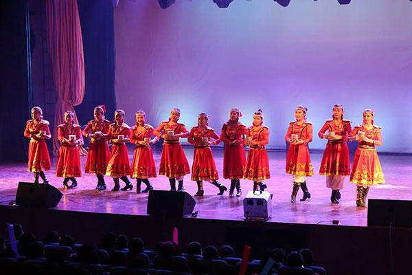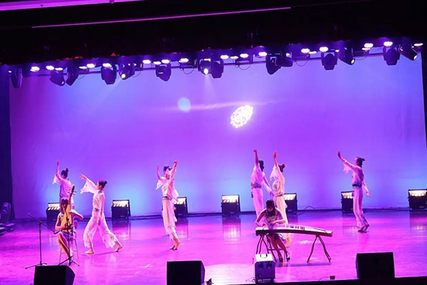 国标舞社团带来的开场舞!民族服饰走秀,这一节目风格独特而且服饰的制作工艺精湛,为观众带来美轮美奂的视觉享受!爆笑小品后宫那些事,让观众捧腹大笑青花瓷在古筝与琵琶的交融中流淌着古典的气息,舞者优雅的舞姿使舞台美轮美奂。顶碗舞代表着蒙古族的文化与风情沙画表演美院学生的歌曲串烧,充分带动起了晚会的氛围。