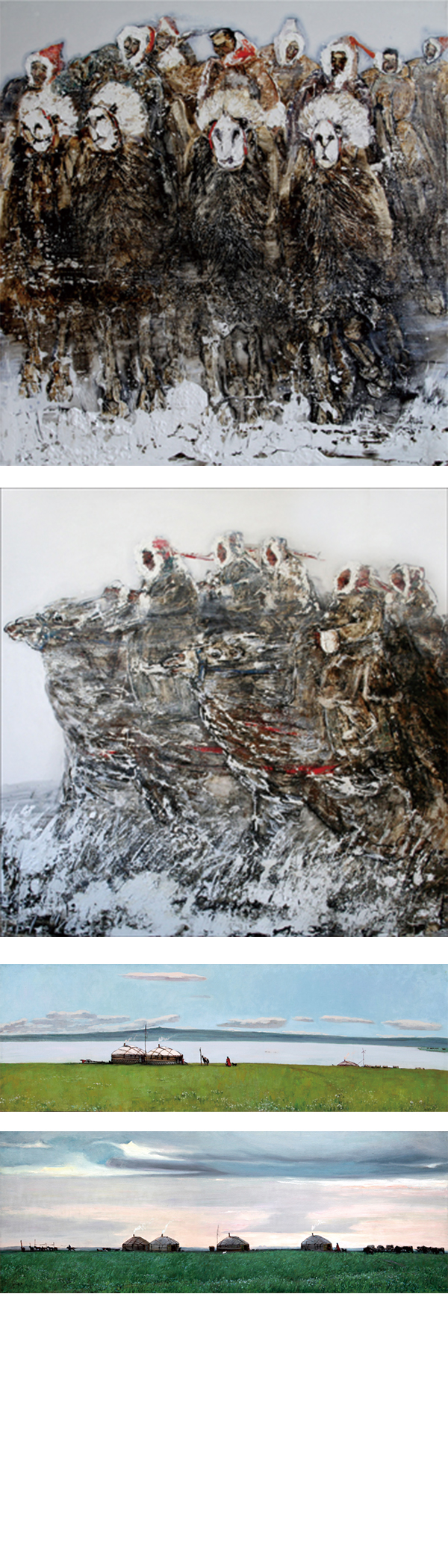2004年 油画《宝力格苏木之晨》入选全国第二届少数民族画展,作品被除数主办方收藏;2004年5月至2005年5月参与《蒙古史长卷》的创作绘制。