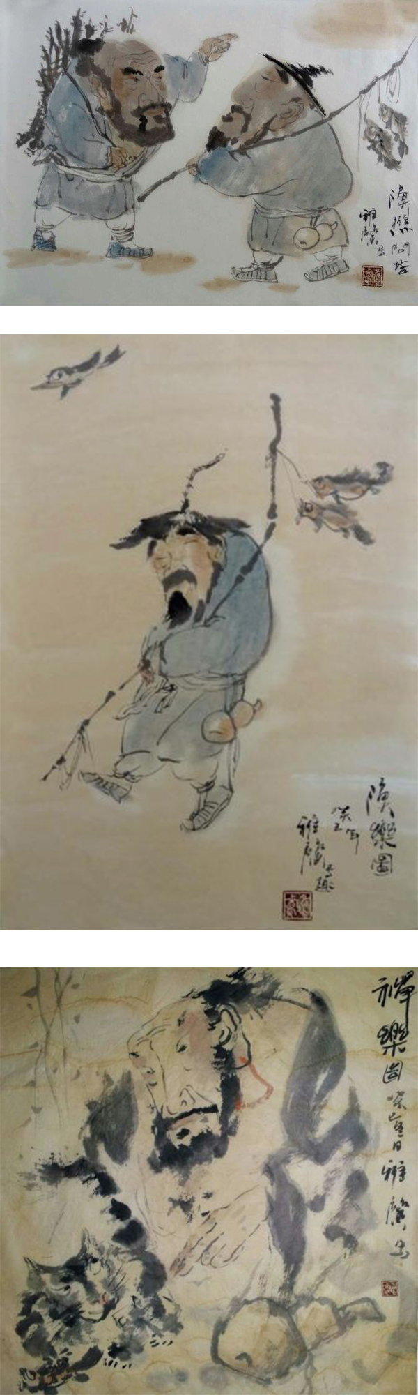 她用中国传统理念和我们特有的纸墨笔砚画出了符合今人审美情趣的新图画,依照客观物质对象的原形勾勒出精神唯美的新意像,按照故事和传说中的古老形象赋予现代人审美诉求的视觉快感。她不拘一格造景、造人、造意境。在这里我们仿佛随她走进了涂鸦的戏剧舞台,参与一场无剧本的大戏。