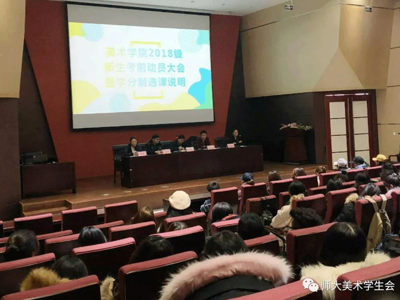 12月25日中午,我院在十大买球官方网站报告厅组织召开了2018级新生考前动员暨学分制选课说明会。美院党委副书记苏小波,副院长胡日查,全体辅导员,学院教务工作人员参加了大会。