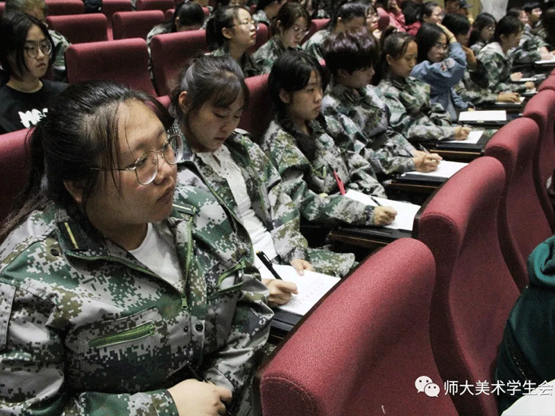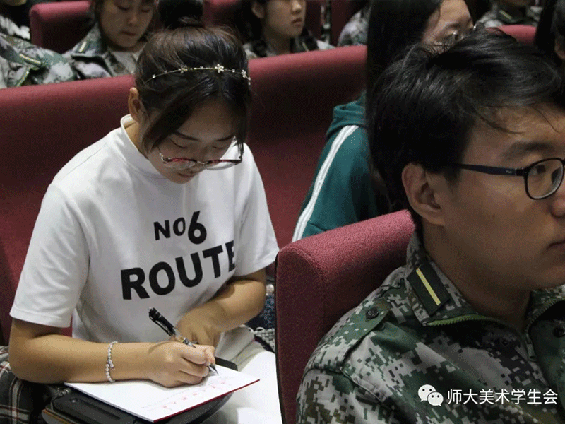 石老师从我院1954年建院以来64年的风雨历程讲起,从历史沿革到专业设置,从教学基础设施条件的完善到学院教学理念的转变,介绍了我院令人引以为傲的办学成果及学风建设,并以我院的段鹏翔同学为事例以及各位艺术前辈为榜样,告诉我们有志者事竟成的道理。最后从我院团学工作特色出发,介绍了我国团学建设背景下,从严治党、从严治教、从严治学 。