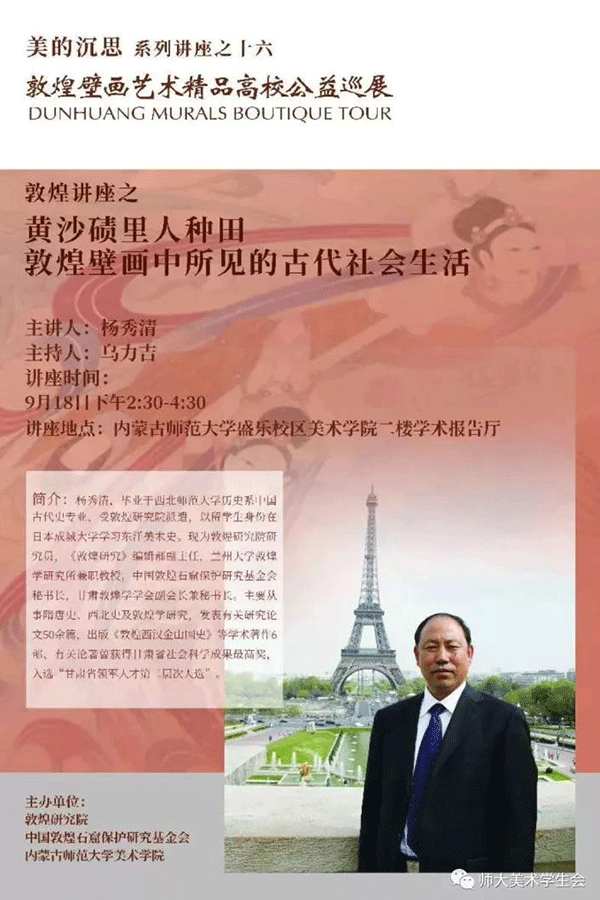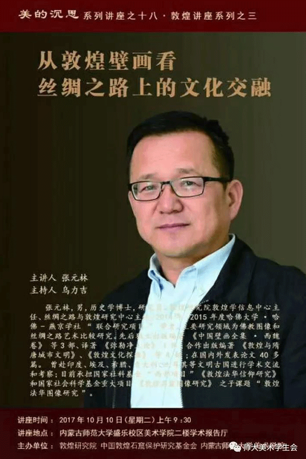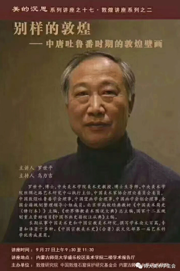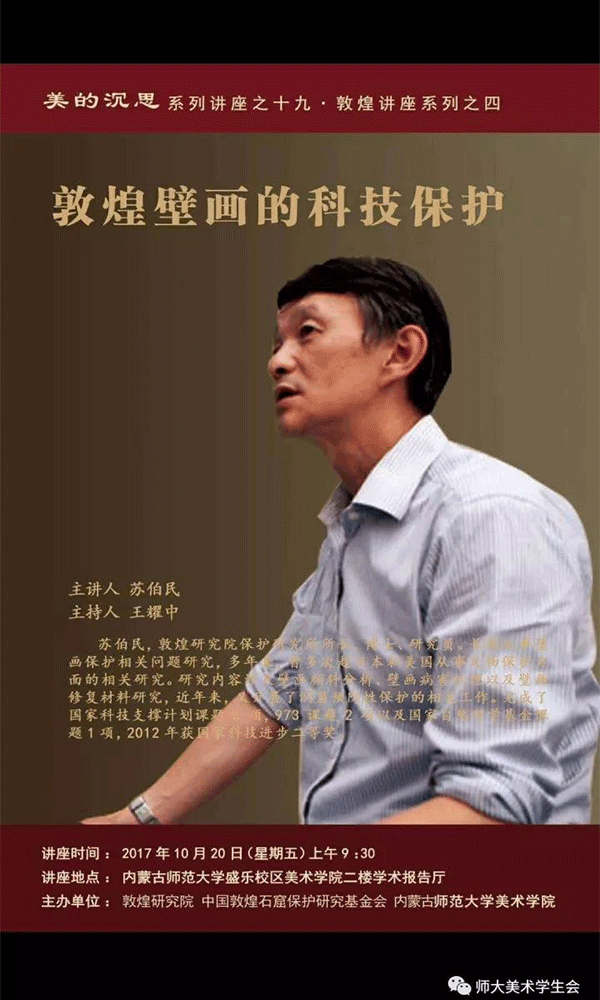 由十大买球官方网站主办的“美的沉思”敦煌系列讲座之“黄沙碛里人种田—敦煌壁画中所见的古代社会生活”、“别样的敦煌 中唐--吐蕃时期的敦煌壁画”、“从敦煌壁画看丝绸之路上的文化交融”、“敦煌壁画的科技保护”在十大买球官方网站学术报告厅相继举行。