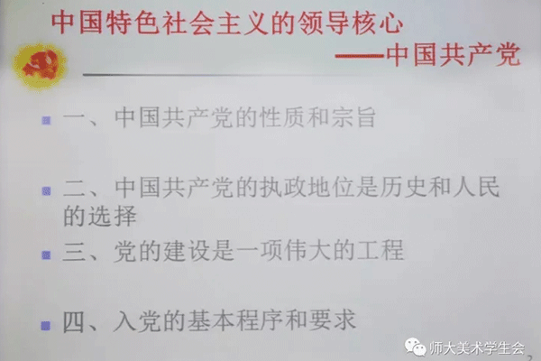 此次党课,马丽老师为积极分子们讲述了坚持党的领导的重要性,内容涉及到党的历史地位和伟大成就。同时,马老师也阐述了自己的入党历程,以自身事迹给同学们展现出入党的重要意义。在老师的引导下,同学们了解到建党历程的艰辛,认识到党的重要性,让同学们更加坚定了入党的信念。