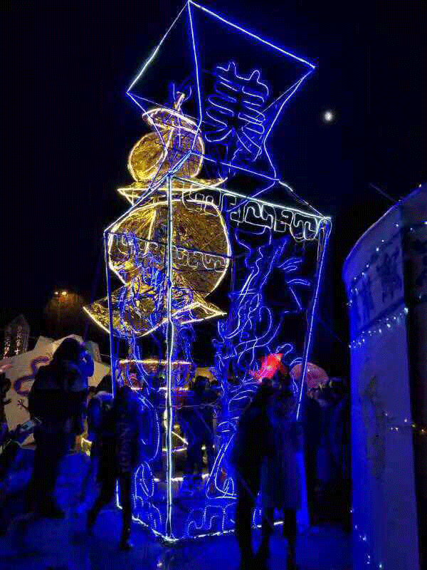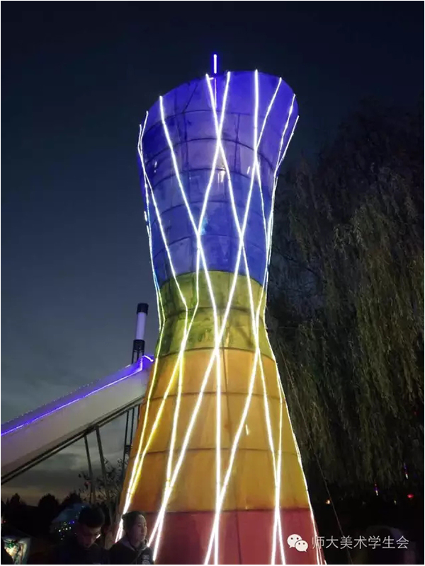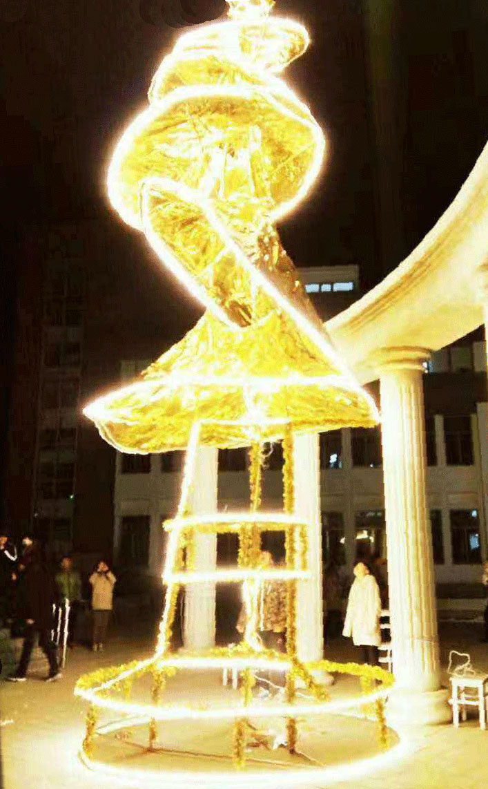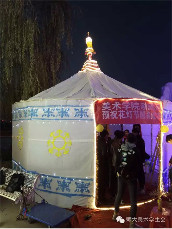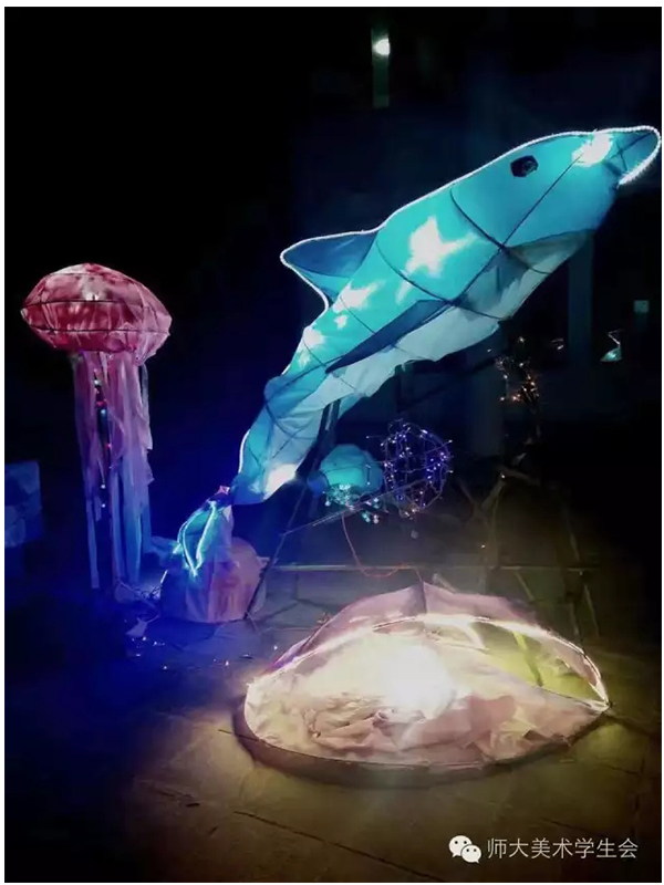 此次参展的花灯均由买球赛十大平台各个学院的学生手工制作。我院提供六个花灯。平面设计班学生们将传统文化融入自己的理解,通过动手动脑将一个花瓶形状的花灯制作的美轮美奂;绘画班的同学们将海洋与环保融合制作出一个海豚水母的花灯组合,寓意深刻,精致的花灯受到了师生一致的称赞;美术学的同学们也是毫不逊色,经过几天的努力,一个八米高的圣诞树形象的花灯树立在我们面前,甚是美丽;动画班的同学们更是发挥想象将少数民族特色风情与花灯结合,制作出一个蒙古包形状花灯,花纹与样子极其富有民族艺术气息。