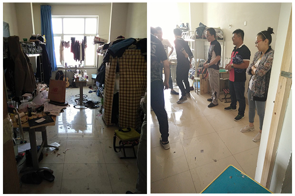 为进一步加强宿舍安全管理力度、改善学生居住环境,5月10日我院学生自律管理委员会与三位辅导员老师,樊永强、宋洁、王明老师,深入男生宿舍,进行大检查。对于存在安全隐患、卫生较差的宿舍进行现场清扫。经一中午的努力,各宿舍卫生有了很大改观。希望同学们以后能保持宿舍环境,营造舒适空间。