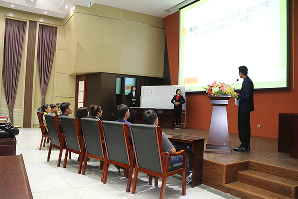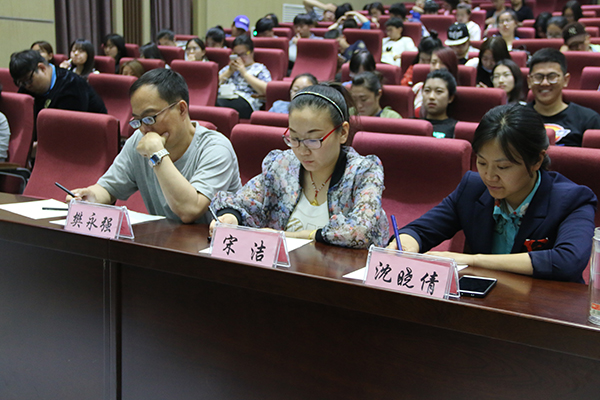 6月19日,十大买球官方网站校园安全知识竞赛总决赛在学院报告厅拉开帷幕。14级环境艺术班和15级绘画油画、版画班进行了最后角逐。到场的嘉宾有十大买球官方网站团总支副书记白胡格吉乐图,学工办副主任沈晓倩,辅导员宋洁、樊永强、王明。经过5个环节的激烈角逐,15级绘画油画、版画班获得了此次知识竞赛的冠军。