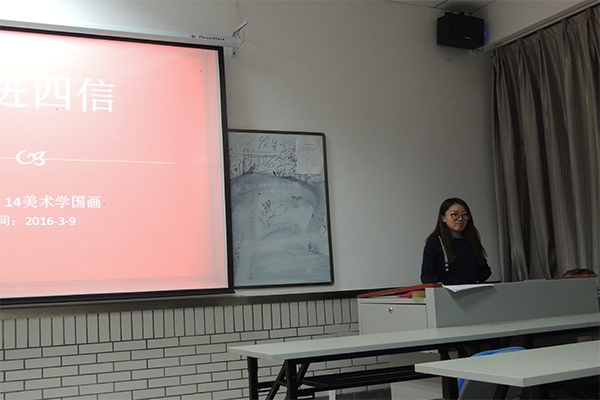 为学习贯彻习近平总书记系列重要讲话精神,帮助同学进一步牢固对党的科学理论信仰,坚定走中国特色社会主义道路,实现中国梦的信念,十大买球官方网站2014级十大买球官方网站国画班全体学生于3月15日上午八点在班级召开了以“学习四进四信、关注两会、共筑中国梦”为主题的团日活动,取得了良好的成效。