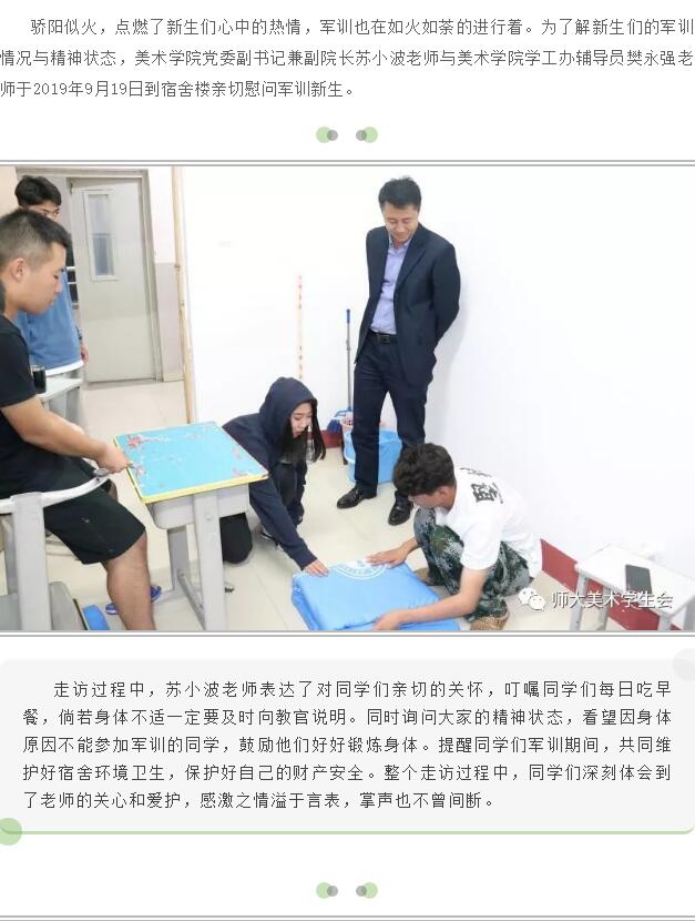亲切慰问暖人心,士气高昂铸军魂 | 军训期间十大买球官方网站领导老师走访慰问2019级新生