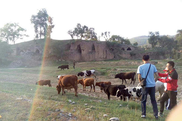 在长达三个小时的汽车旅程,我们终于来到了期待的地方,北堡。一下车那一股浓烈的乡土气息扑面而来,让我们昏沉的精神为之一震。然而住的地方并不是我们一直讨论的窑洞农家,让一些居住城市里,想体验乡土生活的同学好一阵失落。不过一心想绘画的我们对居住环境也不太在意,因为这里的景色,西北土地厚重的文化,大地渗出的味道无时不刻的吸引着我们。