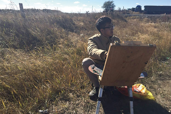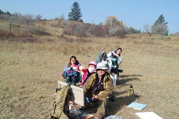 恨的是大克旗变化多端的天气是多么不留情面,中午还艳阳高照,下午就寒风凛冽。 这样的极端实在抵挡不住。虽然这样,每天我们个个都武装的严严实实,还是一如既往的上山画画,不论雨雪风霜,这种精神值得鼓励,为大家点个赞,更为我们敬爱的老师点个赞。不管老师写生多么晚回来都会给我们一一点评画,指出画中得优点及不足的地方。对于每个人的色彩风景,在大家的努力和老师的指导下都有很大的收获。在写生之余,想必和大家最开心的事就是在一起等待美味可口的饭菜,看到大家狼吞虎咽的吃着,感觉大家在一起真好。