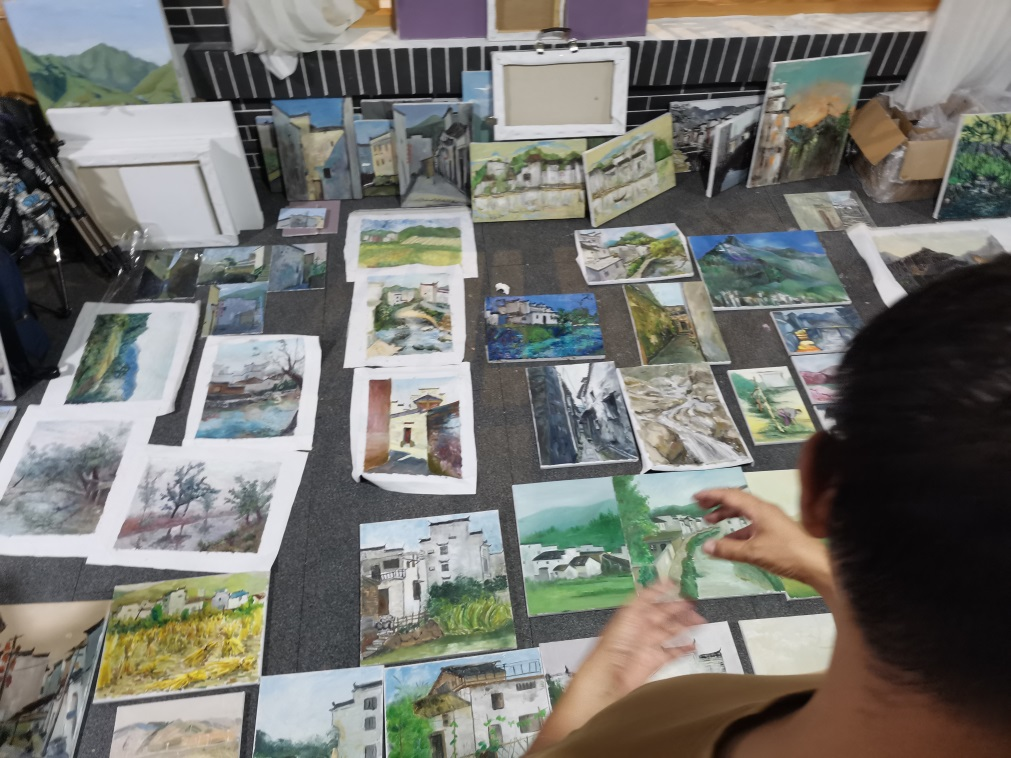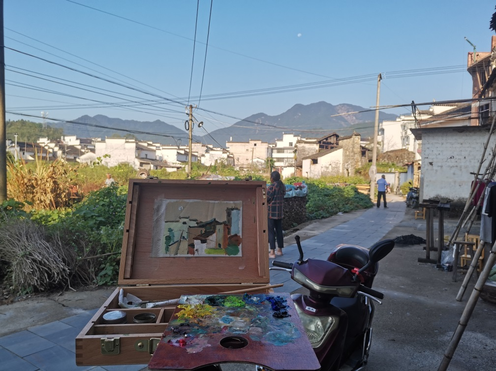 在接下来的时间里,我们不仅了解了当地的风土人情,体会了不同于内蒙古的独特建筑魅力和自然风光,而且提高了自己的绘画水平和创作能力。胡老师每天晚上都会对我们每一位同学当天完成的绘画作品从构图、色彩等方面进行点评,让我们对南方山水的理解更透彻,也能更好地通过油画材料表现秀丽的婺源风光。
