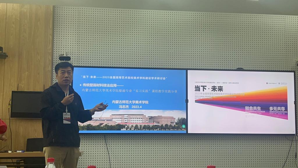 4月24日,由中国美术家协会主办,中国文联美术艺术中心、中国美术家协会壁画艺术委员会、云南艺术学院承办,昆明市博物馆协办的“2022中国壁画作品展”在昆明市博物馆开幕。展览同期举办了 “当下·未来——2023全国高等艺术院校美术学科建设学术研讨会”,我院副院长胡日查教授,壁画系李崇辉教授,壁画系主任冯志杰老师应邀参加会议,会上李崇辉教授、冯志杰老师做了主题发言并于专家们共同探讨美术学科壁画专业建设及课程研讨,分享了十大买球官方网站的教学情况。