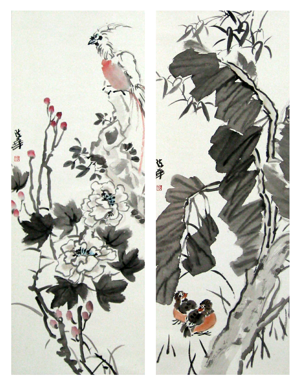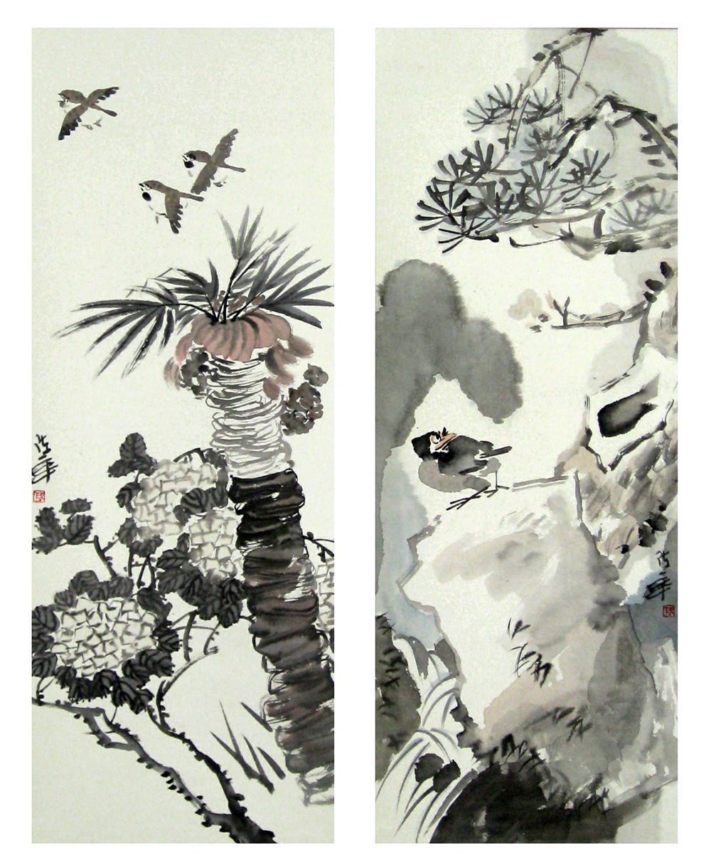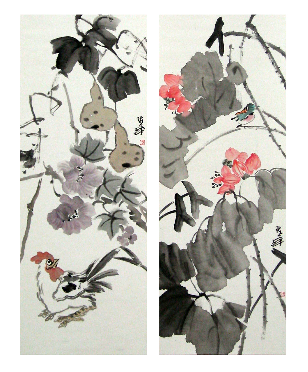 《花鸟作品1、2、3》 48cm×150cm 2009年