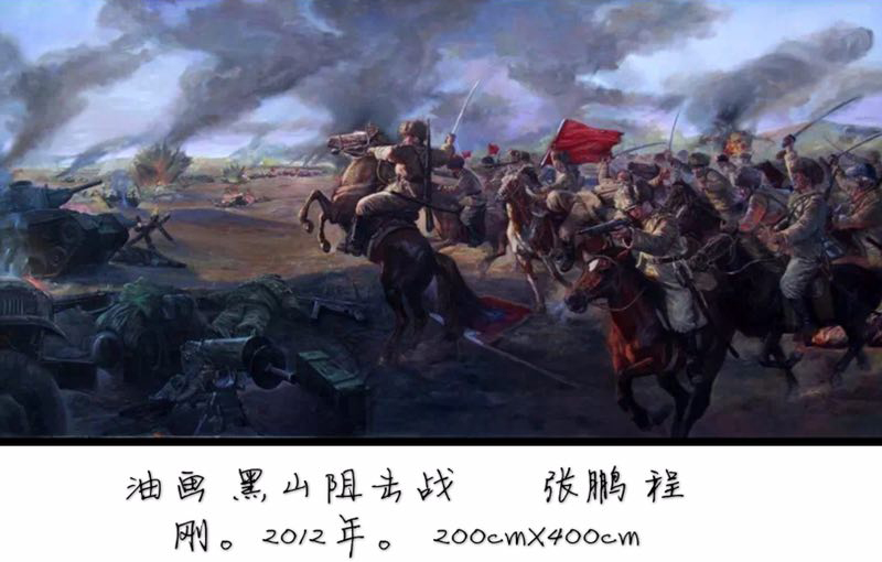 10.绘画作品油画《黑山阻击战》与程刚合作,承担内蒙古历史、文化重点工程,2011年 。