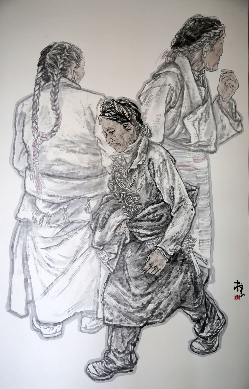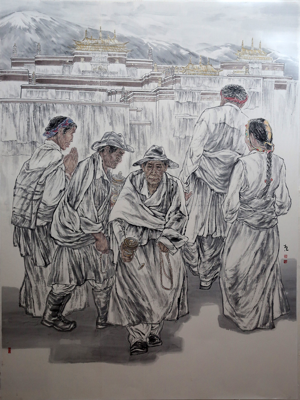 《香巴拉的朝圣者——西藏写生》210cm×180cm 2012年