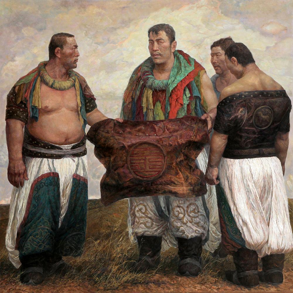 7.作品《文豪草原行》(合作完成)内蒙古重大历史题材油画的创作,2010-2012年。