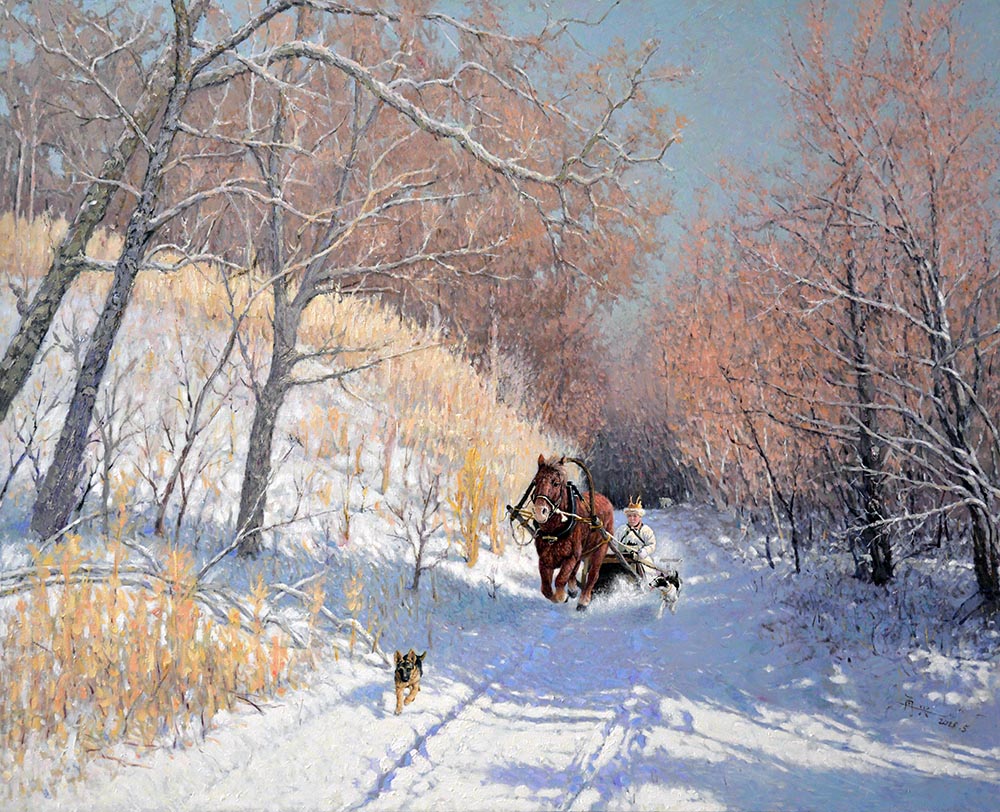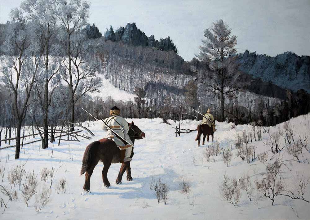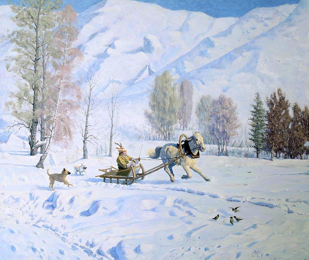 《纵马雪原》110x140cm 2014年