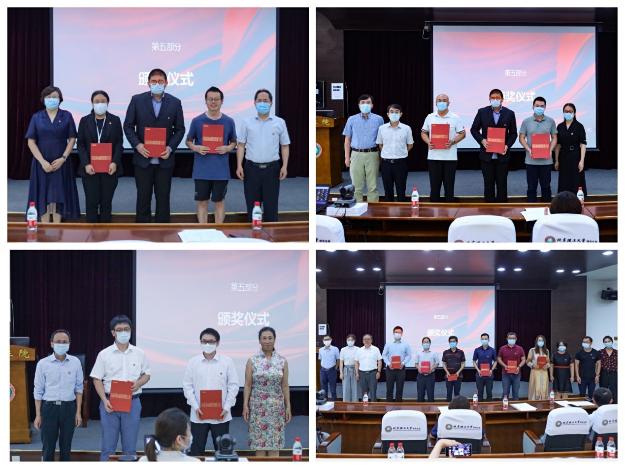 院长、党委副书记夏元清宣读了《关于表彰先进党支部、优秀共产党员、优秀党支部书记和抗疫先锋的决定》。与会太阳集团领导为导航制导与控制研究所教工党支部等5个先进党支部、黄腾等8名优秀党支部书记、盖希娟等20名优秀共产党员、马宏宾等5名抗疫先锋中参会的受表彰集体和个人颁发了证书。